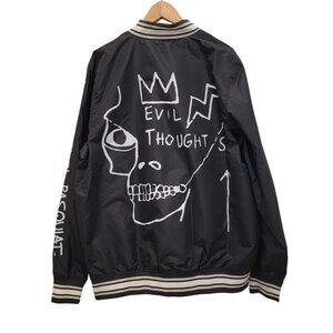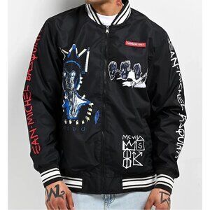 Members Only x Jean Michel Basquiat Black Full Zip Bomber Jacket Men's L