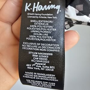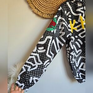 Front Pockets. Logo. Black & White Keith Haring Artwork.