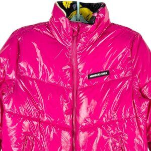 Members Only x Nickelodeon Women Fuchsia Puffer Jacket Sz M Rugrats Lining NWT