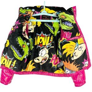This jacket combines bold design with functionality, featuring a vibrant Nickelodeon Rugrats print lining and a durable, insulated exterior.
