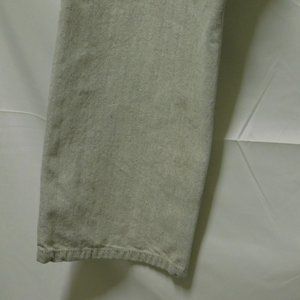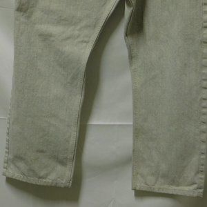 Member's Property Raw Denim Relaxed Loose Fit Light Grey Jeans. Has some natural discoloration in the jean material through out the pants.