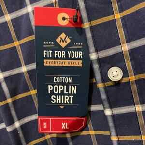 Members mark XL button down plaid shirt. No front pockets.