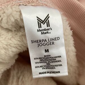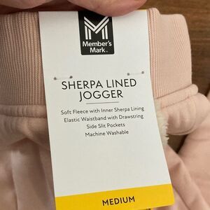 Cozy Sherpa lined jogger by Member's Mark. Features a soft cream interior and a stylish pink exterior. 15 in waist, 27 in inseam, in good condition