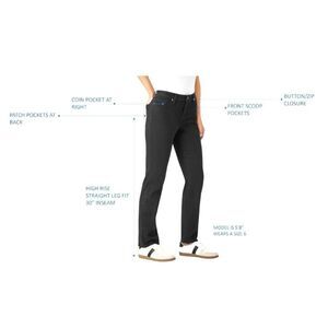 The straight leg silhouette offers a timeless look that seamlessly transitions from day to night, making it a wardrobe essential for every occasion. Practicality meets elegance with the five-pocket styling, complete with a coin pocket at the wearer's right front pocket, adding a touch of functionality to the chic design.