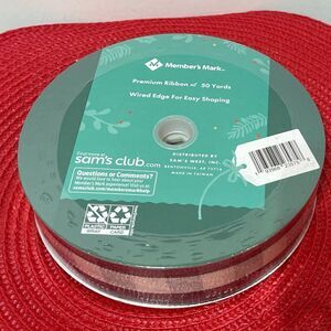 Members Mark Wired Ribbon Black and Cream Buffalo Check 50 yards NWT