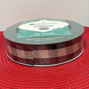 Members Mark Wired Ribbon Black with Cream Buffalo Check 50 Yards NWT