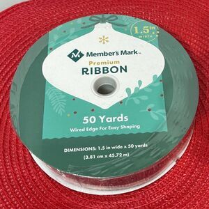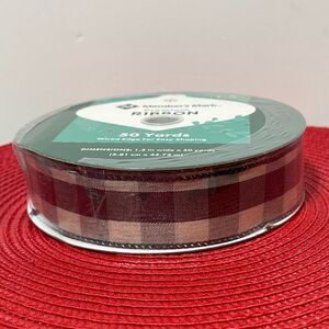 Members Mark Wired Ribbon Black with Cream Buffalo Check 50 Yards NWT