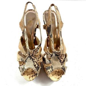 Memorato By CLN Women’s Sz 37 Brown Faux Snake Skin Open Toe Slingback Heels