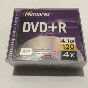 Memorex DVD+R 4.7 GB 120 Minute 4X RW, 6 pc, Sealed Discs + Cases
