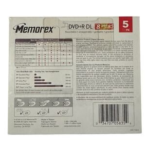 Memorex DVD+R DL 5 Pack 2x 8.5 GB 240 Minute New Sealed