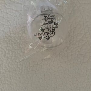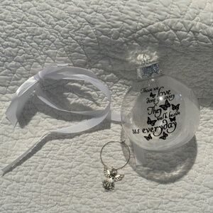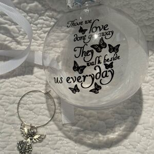 Available for your consideration is a BRAND NEW memorial ornament. Featuring a heartfelt message in black print accompanied by butterflies, which reads: