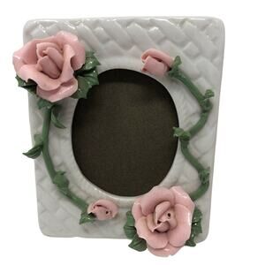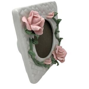 Memorial Rose Frame and Tea Candle Holder Set Ceramic Vintage