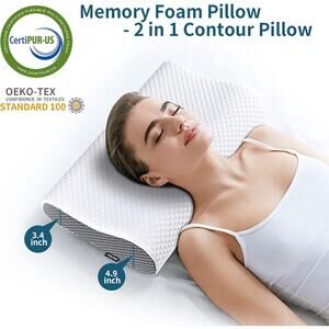 5S Slow Rebound Memory Foam Pillow: The neck pillow is designed to provide both support for the head and neck and comfort for a good night's sleep. The memory foam pillows shape automatically when firmly pressed and rebounds within 5 seconds when there is no pressure applied, maintaining its shape throughout the year without deformation. The slow rebound design ensures the neck support pillow providing a comfortable, pressure-free sleeping experience Contour Design for Any Sleep Style: The foam pillow is with size: 23.5 x 13.4 x 4.9/3.4 inches ( L x W x H). Contour pillow is designed with two adjustable heights to support the neck and head for any sleeping position, such as side sleeping, supine, stomach sleeping, back sleeping, and low pillow sleepers Breathable Skin-friendly Pillowcase