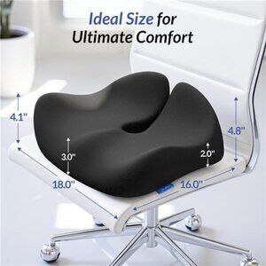 🧿'W' and 'U' Shaped Designs for Effective, Targeted Relief: This office chair cushion is ergonomically shaped for sitting relief. The U-shaped cutout provides tailbone relief. The W-shaped front distributes thigh pressure and improves blood circulation, while straightening the posture. These designs make this chair cushion ideal for relieving pains in the sciatica, tailbone, lower back, legs, and hips during long sitting. Note: If you have any injuries, please consult your doctor before using