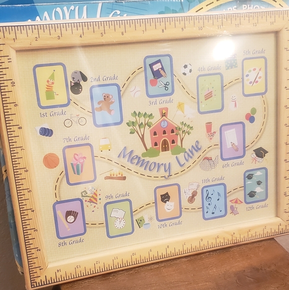 Perfect for little ones going into school or for any school age kiddo! Place their school photos in each frame and you have a "thru the years" look at your pride & joy!!! Would definitely keep this if my little one was a little older. Let me know if you have any questions! Is about 11×14. Brand new still wrapped in cellophane!