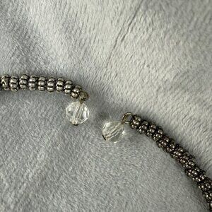 Memory Wire Silver-Tone Choker Length Necklace Ornate Oval Pendant Beaded Accent