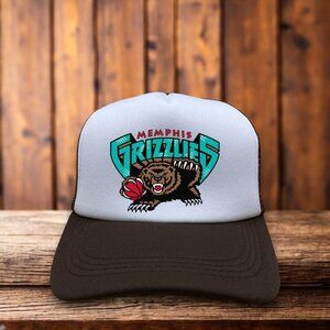 Memphis Grizzlies Mens Trucker Hat Brown Snapback 1995 Logo Retro Basketball Cap