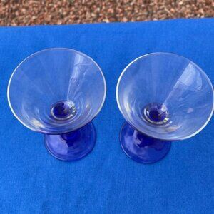 Memphis style zigzag wine glasses with cobalt blue base. Appx. 5" H.