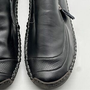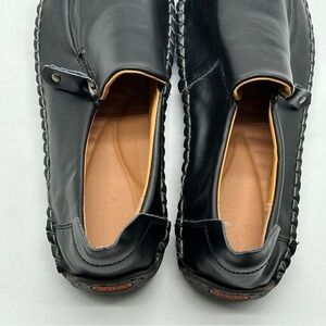 These black leather shoes in size 43 (UK 7.5, US 10) are a stylish and versatile addition to any man's wardrobe. With a solid pattern and zip closure, they offer a classic and sophisticated look. Made with 100% caoutchouc rubber outsole, leather lining, and insole, these loafers provide comfort and durability. The fashion brand and leather upper material ensure quality and style, perfect for casual wear. Whether dressed up or down, these shoes are sure to make a statement.