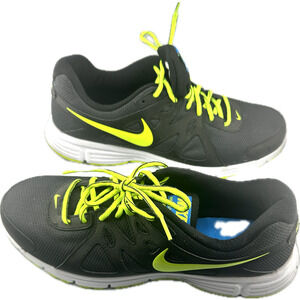 Men 13 NIKE Revolution 2 Black Volt NeonYellow Lo Top Sneakers