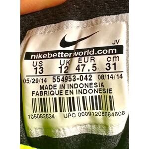 Elevate your style and performance with these Men's Nike Revolution 2 sneakers. The low top, standard width design provides a comfortable fit for any activity, whether it's basketball or just for casual wear. The colorful neon yellow, green, and black synthetic upper material adds a touch of athleisure to your outfit, while the Nike Revolution product line ensures quality and style. These sneakers are perfect for men who want to add a pop of color to their wardrobe without compromising on comfort and performance. The shoes were manufactured in Indonesia in 2014 and are available in UK shoe size 12, US shoe size 13, and EU shoe size 47.5. Don't miss out on the chance to own these stylish and versatile sneakers.