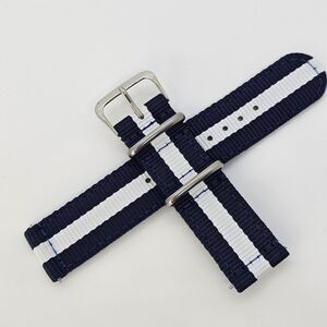 Men 22MM Canvas Nylon Watch Band Quick Release Two-Piece Straps Dark Blue White