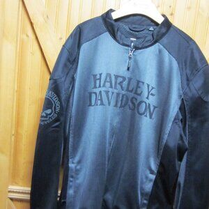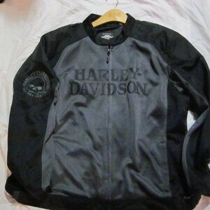 Men's 3 xl Harley Davidson logo sleeve back graphic SKULL Ghost Town Jacket in mint shape. Padded back logo sleeve Velcro fitting sip with logo tab front gray black. Chest 60 in shoulder to hem 31. Features 2-way zipper- 2 zip pocket front- Elbow padding- Velcro fit sides- inside pocket- Jacket is in never worn condition