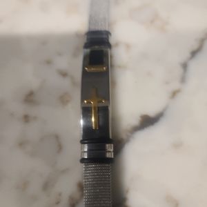 men stainless steel bracelets with mesh band adorned with the holy cross say it brings good luck