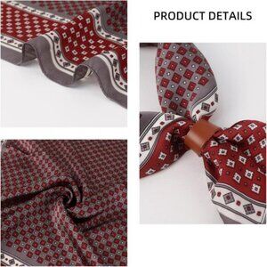 ⚡Men A-Gray Red Necktie 27.5 Inches Cowboy Scarves Pocket Square Silk Bandanas