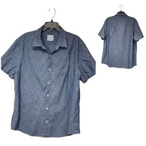Men AMERICAN EAGLE AE Blue White Denim Chambray Polka Dot Button Up Shirt XL