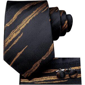 Men Black Brown Tie Set Solid Paisley Necktie Pocket Square Cufflink Formal