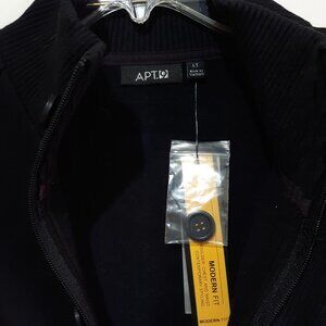 Men Black Button Zip-Front Sweatshirt Ribbed Collar Cuffs Apt 9 XLT