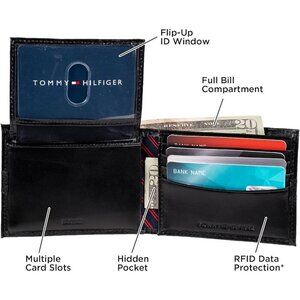 Men Black Classic Bifold Wallet with ID Window and Multiple Card Slots