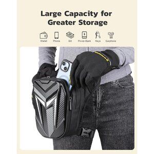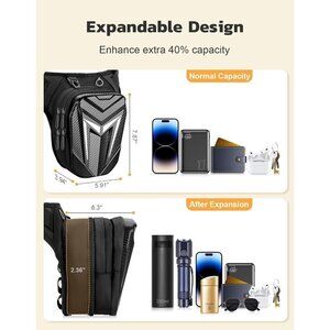 【Spacious & Versatile Storage】Our leg bag features two zippered compartments, including an elastic pocket in the main section and a mesh pocket in the secondary. Expanding 40% space with a gentle pull, it comfortably holds essentials like your smartphone, power bank, wallet, water bottle, and first aid kit.