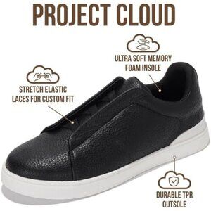 โก Men Black Faux Leather Memory Foam Insole Lightweight Non Slip Sneakers