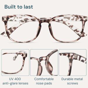 BLUE LIGHT BLOCKING GLASSES: Our blue light glasses for women boast UV400 protection, blocking up to 99% of harmful blue rays from computer screens. With these bluelight glasses women, you can enjoy gaming, reading, or watching TV with no worries of eye strain.