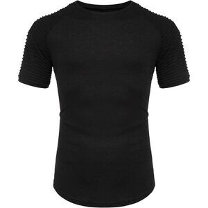 Men Black Muscle TShirt Pleated Raglan Sleeve Hipster Gym Tee Short Sleeve Shirt