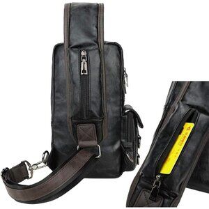 💫 Men Black Vintage Leather Sling Backpack Crossbody Chest Shoulder Bag
