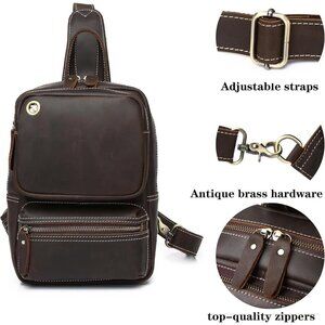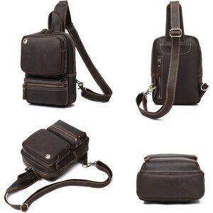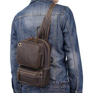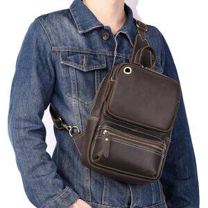 💫 Men Black Vintage Leather Sling Backpack Crossbody Chest Shoulder Bag