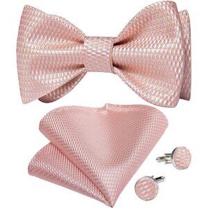 【Complete Pocket Square Set】Paisley floral self-bow tie, woven pocket square, matching cufflinks, box.Crafted from colorfast fabric that coordinates seamlessly with suits and tuxedos for weddings, galas, or black-tie events