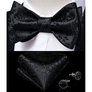 【Complete Pocket Square Set】Paisley floral self-bow tie, woven pocket square, matching cufflinks, box.Crafted from colorfast fabric that coordinates seamlessly with suits and tuxedos for weddings, galas, or black-tie events