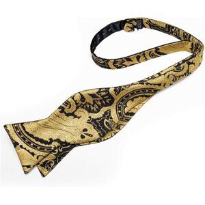 Men Bow Tie Paisley Striped 08 Shiny Gold