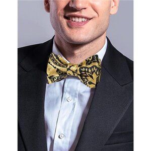 【Complete Pocket Square Set】Paisley floral self-bow tie, woven pocket square, matching cufflinks, box.Crafted from colorfast fabric that coordinates seamlessly with suits and tuxedos for weddings, galas, or black-tie events
