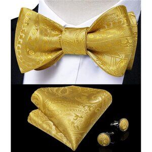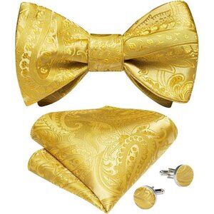 【Complete Pocket Square Set】Paisley floral self-bow tie, woven pocket square, matching cufflinks, box.Crafted from colorfast fabric that coordinates seamlessly with suits and tuxedos for weddings, galas, or black-tie events