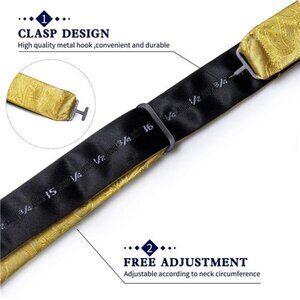 【Bow Tie self-Tie for Men Size】Bowtie size: 4.72 inch (length) x 2.75 inches (width). Pocket square size: 9.25 inch x 9.25 inches. Adjustable length 13 inch -18 inches, for all-day comfort during ceremonies, receptions or evening parties