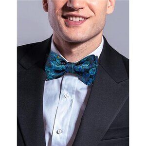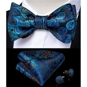 【Complete Pocket Square Set】Paisley floral self-bow tie, woven pocket square, matching cufflinks, box.Crafted from colorfast fabric that coordinates seamlessly with suits and tuxedos for weddings, galas, or black-tie events