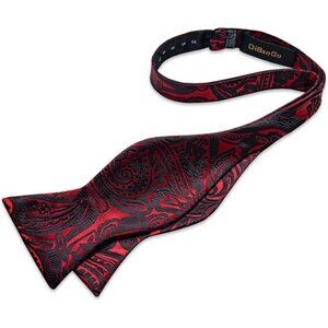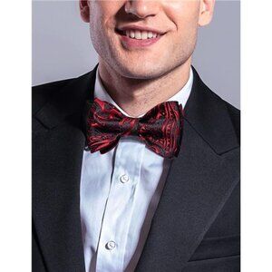 Men Bow Tie Paisley Striped Black Red