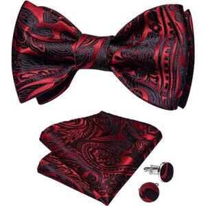 【Complete Pocket Square Set】Paisley floral self-bow tie, woven pocket square, matching cufflinks, box.Crafted from colorfast fabric that coordinates seamlessly with suits and tuxedos for weddings, galas, or black-tie events