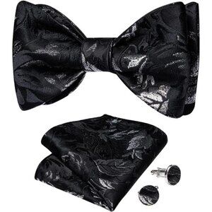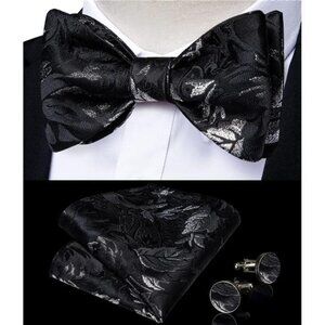 【Complete Pocket Square Set】Paisley floral self-bow tie, woven pocket square, matching cufflinks, box.Crafted from colorfast fabric that coordinates seamlessly with suits and tuxedos for weddings, galas, or black-tie events