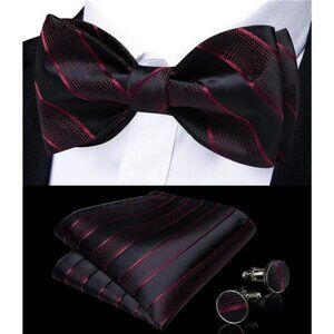 【Complete Pocket Square Set】Paisley floral self-bow tie, woven pocket square, matching cufflinks, box.Crafted from colorfast fabric that coordinates seamlessly with suits and tuxedos for weddings, galas, or black-tie events